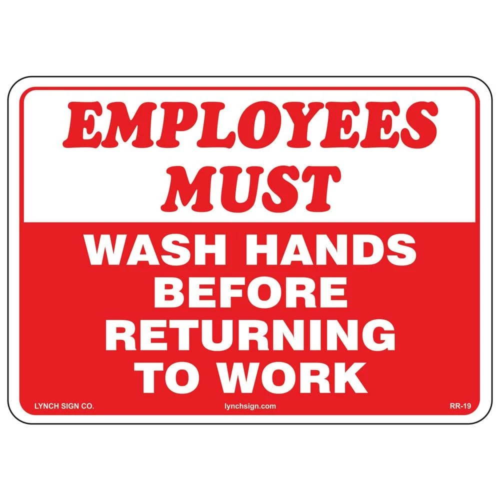 Remind employees that they must wash their hands by posting this sign. Durable, longer-lasting, thick plastic resists fading. Bold type for easy readability from far away.