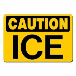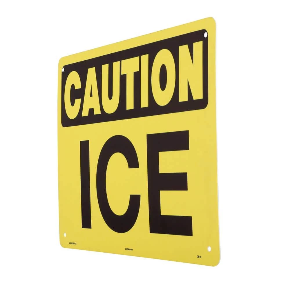 Keep slippery areas safe with this Ice sign. It’s made from fade-resistant styrene plastic and can be used indoors or outdoors. The sign has highly visible bold lettering and contrasting colors that make it easy to read. It has round corners and built-in holes for easy installation. The durable sign is perfect for commercial, industrial or institutional environments.