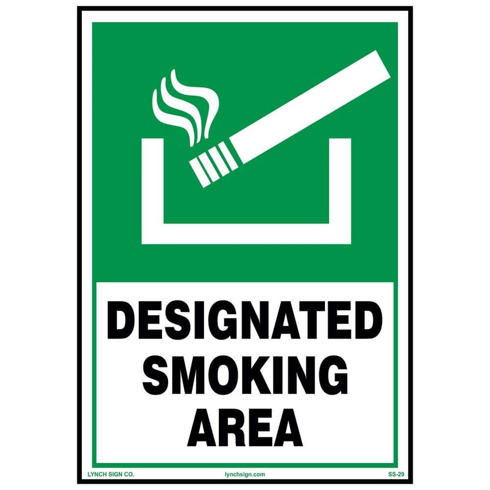 Indicate a “Designate smoking area” by posting this sign. Durable, longer-lasting, thick plastic resists fading. Bold type for easy readability from far away.