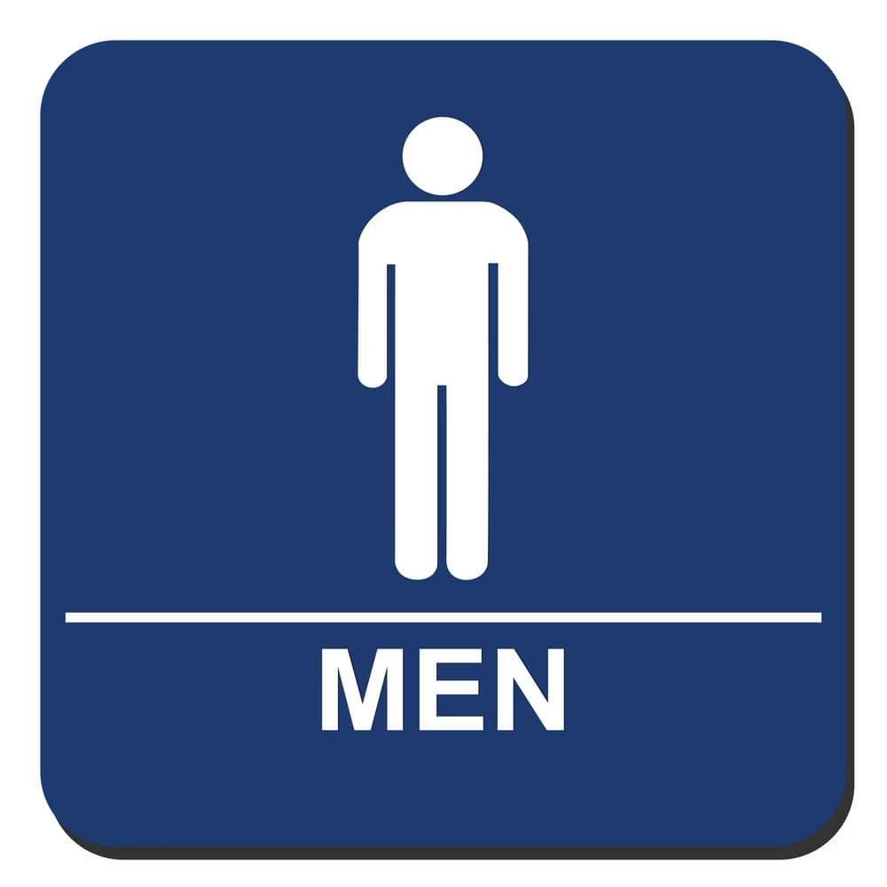 This restroom sign goes on the latch side of the door. This sign has braille. Bold type and contrasting colors for easy readability.