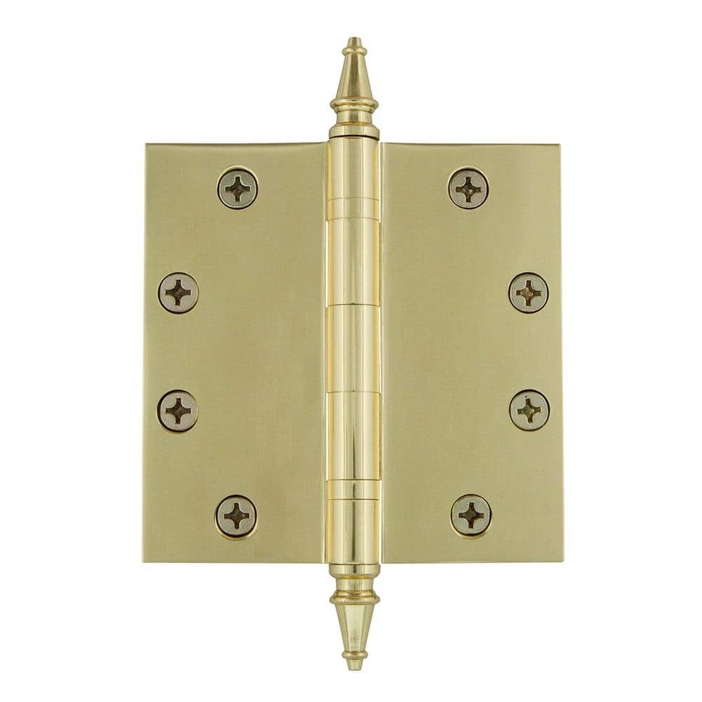Our carefully crafted steel hinges with steeple finials add a dash of ornate elegance to enhance the look of your doors without compromising durability and strength. These 4 and 4.5 hinges are recommended for heavy-duty doors and include ball bearings for additional longevity. Available in 6 finishes to compliment other Nostalgic Warehouse hardware pieces. Choose between square or radius corners for further customization.