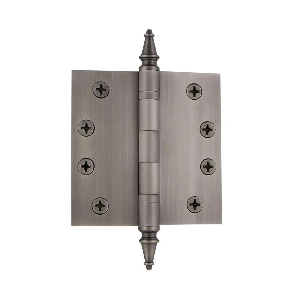 Our carefully crafted steel hinges with steeple finials add a dash of ornate elegance to enhance the look of your doors without compromising durability and strength. These 4 in. and 4.5 in. hinges are recommended for heavy-duty doors and include ball bearings for additional longevity. Available in 6 finishes to compliment other Nostalgic Warehouse hardware pieces. Choose between square or radius corners for further customization.