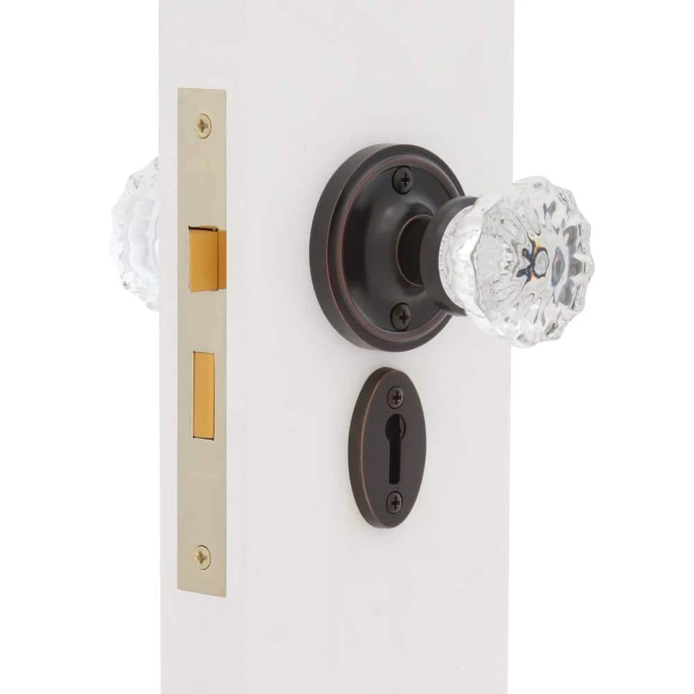 - Solid forged brass rosettes with genuine lead crystal door knobs for detail and clarity