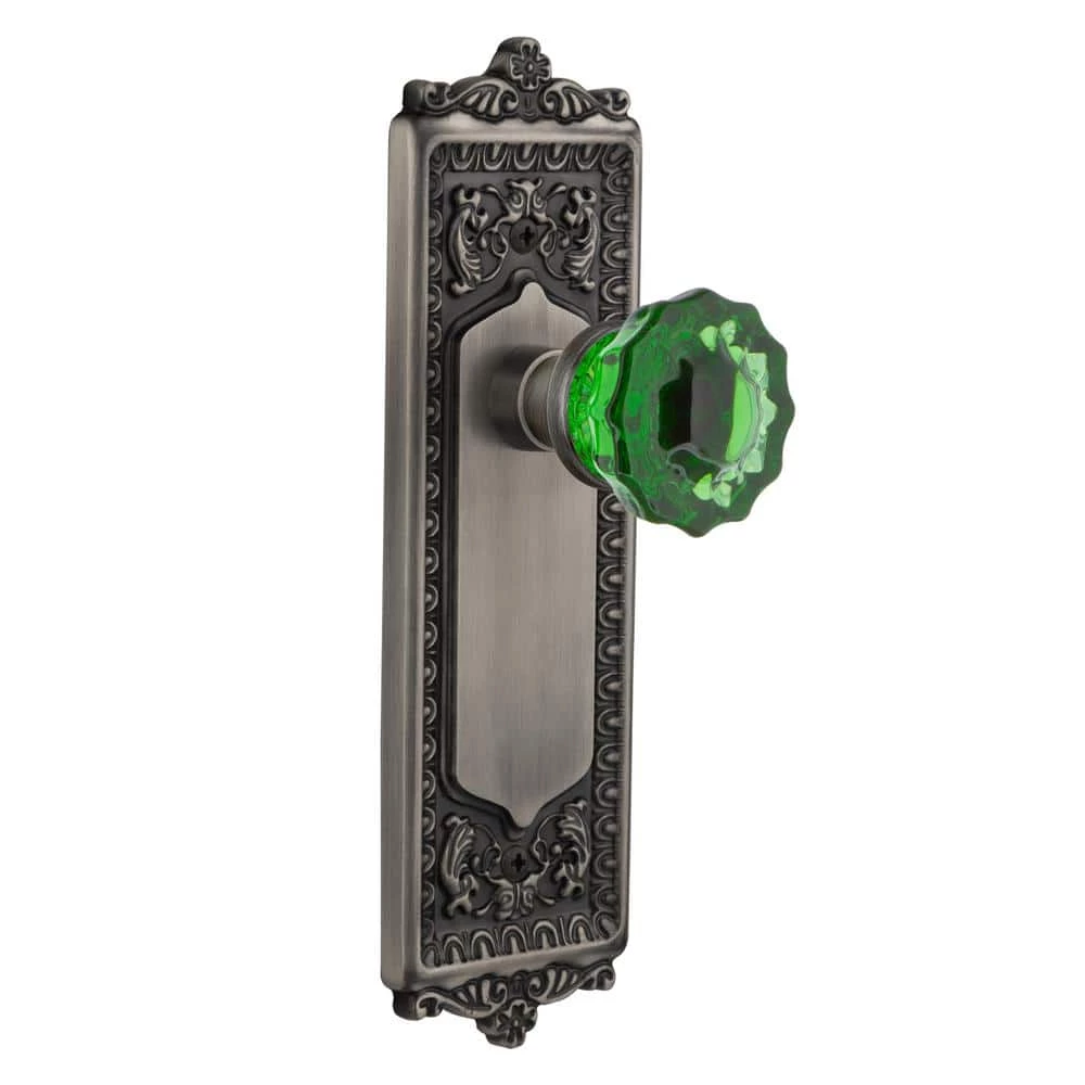 With its distinctive repeating border detail, as well as floral crown and foot, the Egg and Dart Plate resonates grand style and is the ideal choice for larger doors. Add our Crystal door knob, with its smooth center flawlessly flowing into fluted edges, for a striking match. All Nostalgic Warehouse door knobs are mounted on a solid (not plated) forged brass base for durability and beauty.