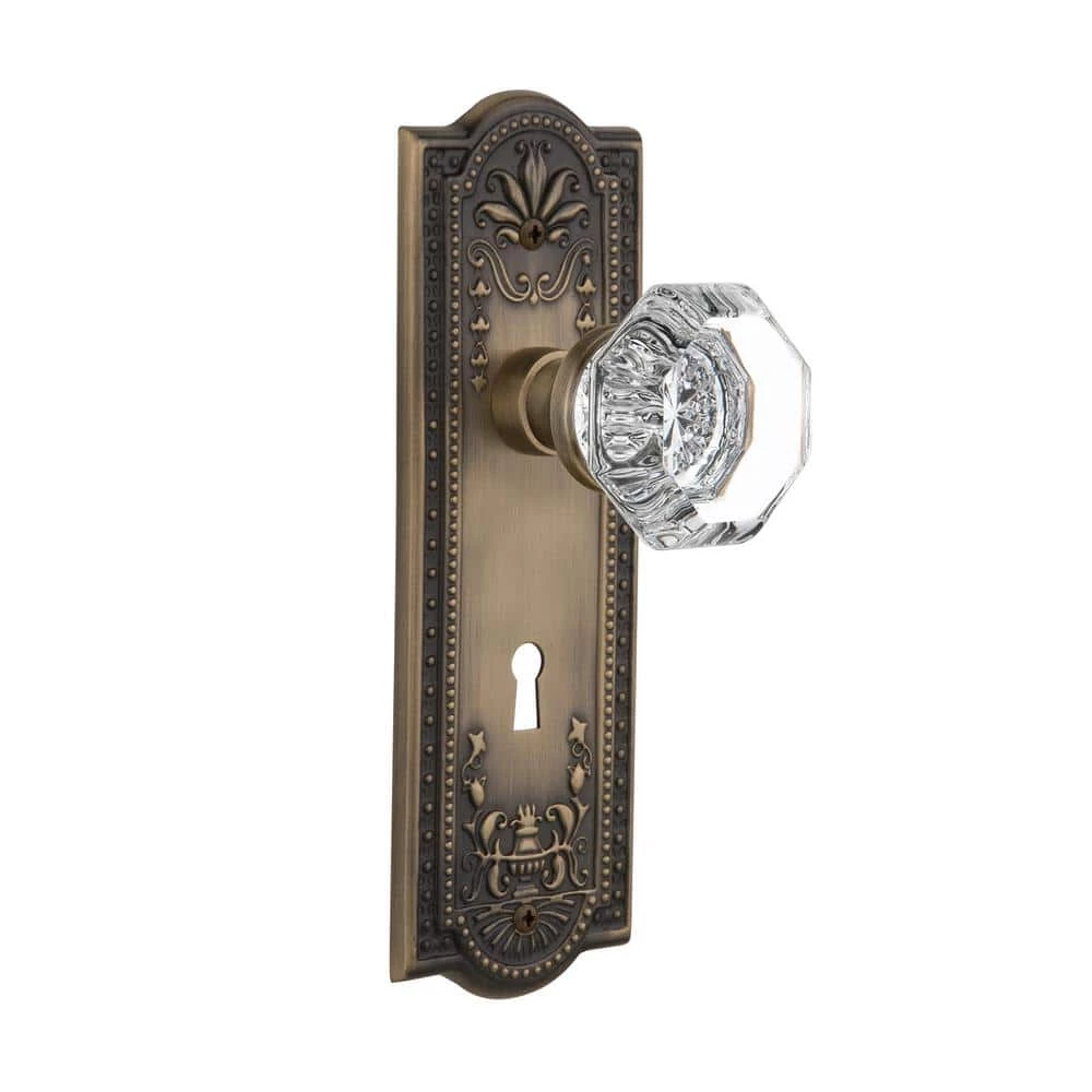 The Meadows Plate, with its intricate beaded detailing and botanical flourishes, creates an inspired design theme. Pair this with our Waldorf door knob and its crisp clean edges, for a lucent look. All Nostalgic Warehouse door knobs are mounted on a solid (not plated) forged brass base for durability and beauty.