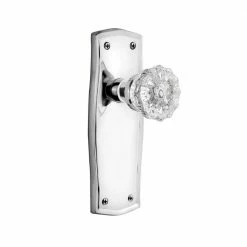 Nostalgic Warehouse Prairie Plate 2-3/8 in. Backset Bright Chrome Privacy Bed/Bath Crystal Glass Door Knob