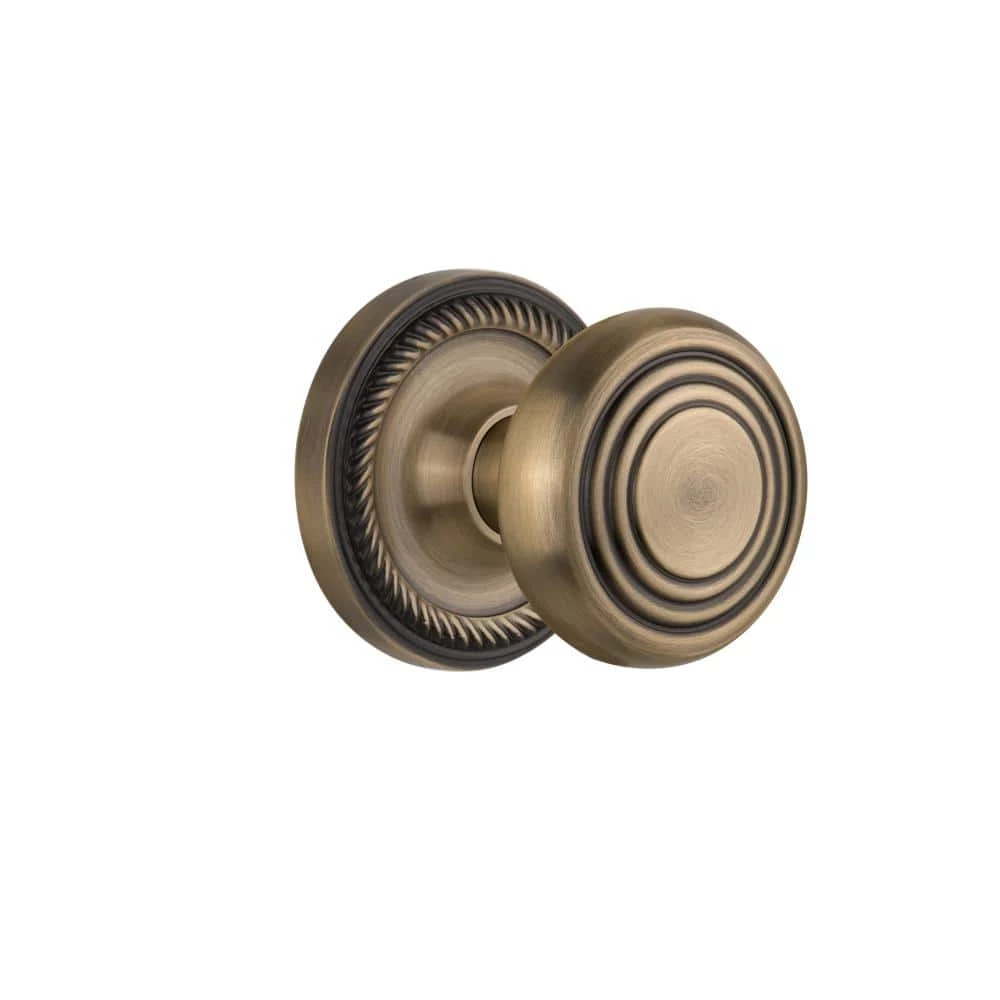 Blending rich detail and subdued refinement, the Rope Rosette captures a style that has been a favorite for centuries. Pair this with our Deco door knob to lend classic lines and a touch of exuberance to your lifestyle. All Nostalgic Warehouse door knobs are mounted on a solid (not plated) forged brass base for durability and beauty.