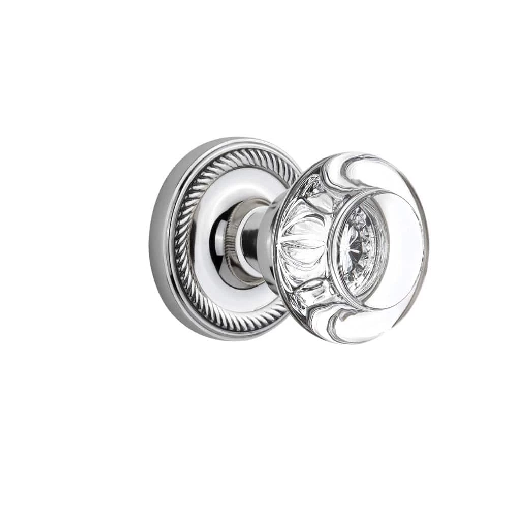 Blending rich detail and subdued refinement, the Rope Rosette captures a style that has been a favorite for centuries. Adding our Round Clear Crystal door knob, which features a circular shape that magnifies the beautiful facets underneath, only serves to bring the past alive. All Nostalgic Warehouse door knobs are mounted on a solid (not plated) forged brass base for durability and beauty.