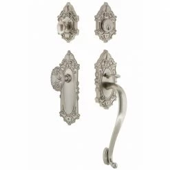 The Victorian Exterior Handleset, with its distinct curvilinear embellishment, is unmistakably old world vogue. All Nostalgic Warehouse handlesets are mounted on a solid (not plated) forged brass base for durability and beauty. Nostalgic Warehouse is a proud manufacturer of high-quality vintage door hardware.