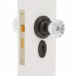 Nostalgic Warehouse Classic Rosette Interior Mortise Crystal Glass Door Knob in Timeless Bronze